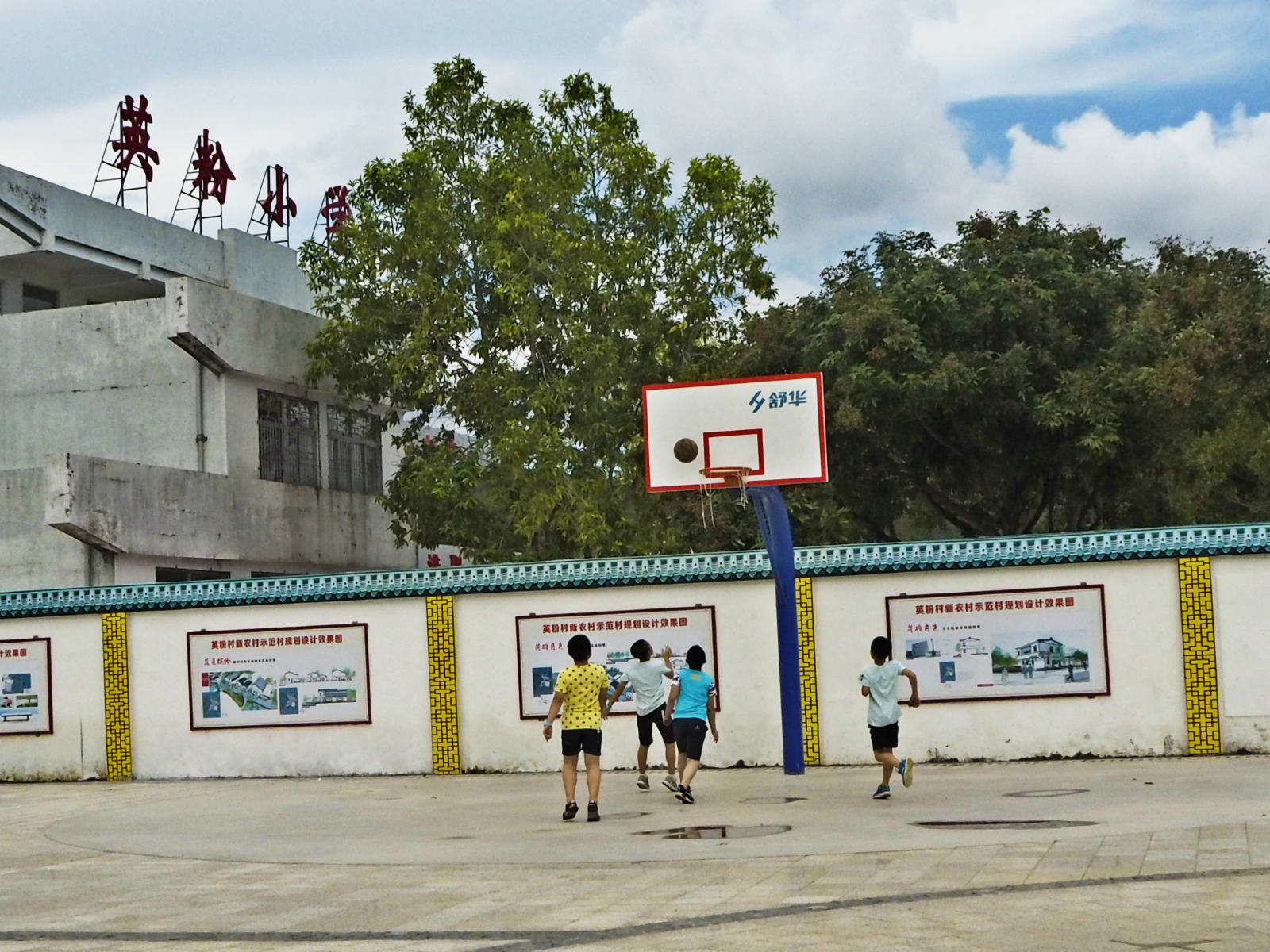 英粉小學裡的學生在打籃球