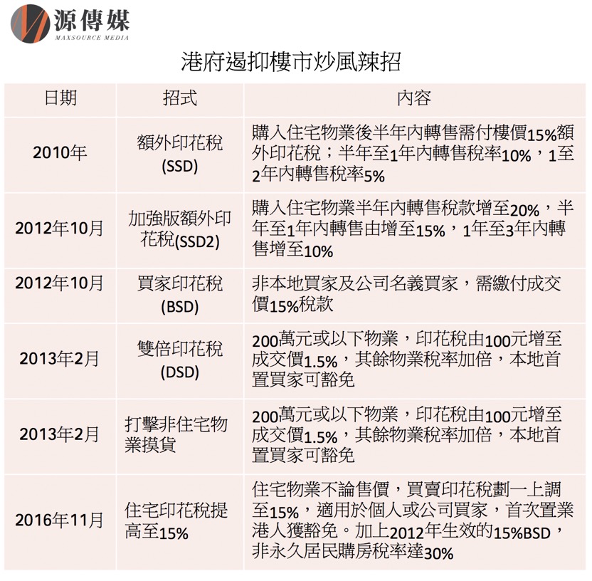 難以抑制樓價 宏觀來看,香港房價大幅下降是不大可能的事情。中原集團主席兼總裁施永青認為,香港高房價的真正癥結,是住宅用地供應量嚴重不足。 香港資深投資銀行家溫天納強調,香港是自由港,稅率極低,特區政府主要稅收來源就是樓市和股市。他續稱,因為高房價長期存在,土地和房屋是香港銀行貸款重要的抵押物。若房價大跌,香港金融體系很可能面臨崩潰。 根據美國機構Demographia今年1月公佈的第14次《全球房價負擔能力調查》,香港連續8次成為全球房價最難負擔城市榜首,房價對入息比率由2016年的18.1倍進一步惡化至19.4倍,數值更是調查歷來最高,意味一個家庭不吃不喝19.4年才買得起一間住宅。全球十大最難負擔城市,第2至第10名依次為悉尼(12.9)、溫哥華(12.6)、聖何塞 (10.3)、墨爾本(9.9)、洛杉磯(9.4)、檀香山(9.2)、三蕃市(9.1)、奧克蘭(8.8)、倫敦(8.5)。