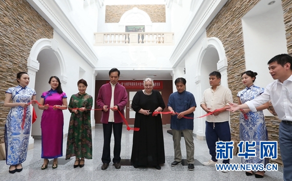 參加一帶一路文化交流中國水墨藝術展的藝術家在開幕式上合影 “美美與共,世界大同”。旨在推進一帶一路建設,促進中外文化交流互鑒,由環球網發起並參與組織的中國水墨藝術展於當地時間7月8日在德...
